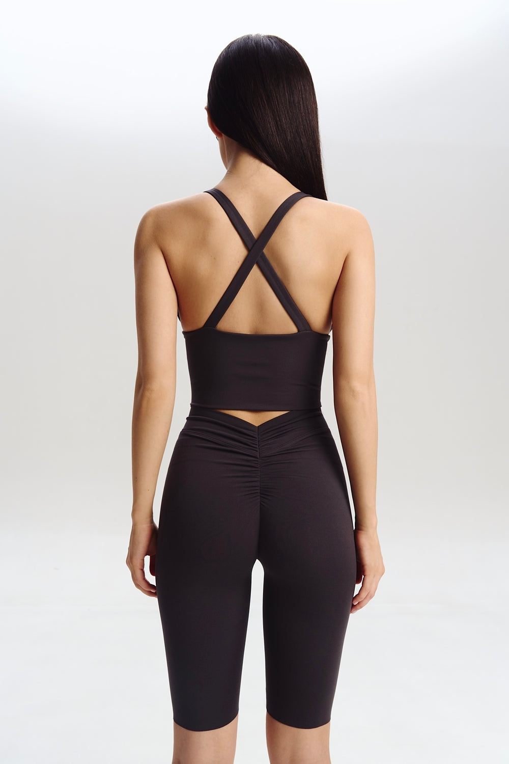 Елегантні велосипедки з високою талією та акцентом на жіночних лініях. V-подібний виріз ззаду та делікатна зборка підкреслюють фігуру, створюючи ідеальний силует.